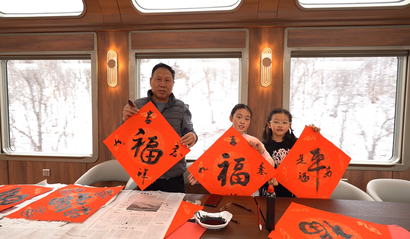 在會議車廂,司乘人員為乘客準備了筆墨紙硯,大家紛紛拿起毛筆,揮毫潑墨。一副副春聯(lián)和福字在大家的筆下誕生,有的蒼勁有力,有的清新秀麗,為蛇年春節(jié)增添了文化氛圍。心靈手巧的游客還拿起剪刀,將一張張紅紙剪成各種各樣的圖案,這些精美的剪紙作品不僅是藝術品,更是游客對新年的美好祝福。