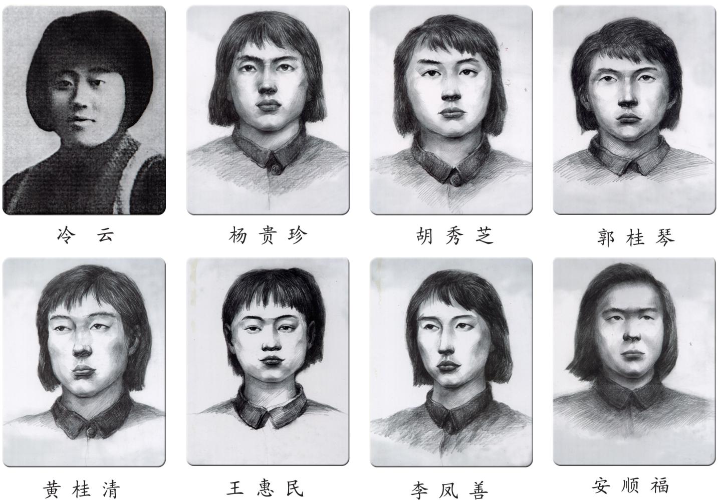 請(qǐng)記?。核齻兪枪伯a(chǎn)黨員、抗聯(lián)二路軍五軍婦女團(tuán)指導(dǎo)員冷云,共產(chǎn)黨員、五軍婦女團(tuán)班長楊貴珍、胡秀芝,五軍婦女團(tuán)戰(zhàn)士郭桂琴、黃桂清、王惠民、李鳳善(朝鮮族)和二路軍第四軍共產(chǎn)黨員、被服廠廠長安順福(朝鮮族)。