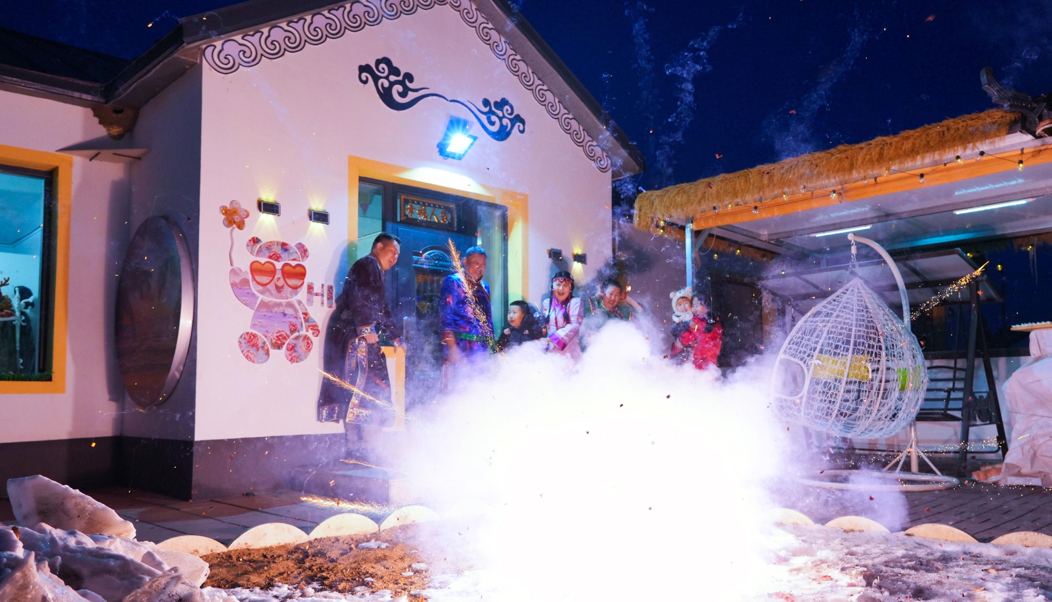 嫩江江畔的氣溫降至零下15攝氏度,冰道凝霜,寒風(fēng)凜冽。在郭勇開設(shè)的“拾光庭院”民宿內(nèi),卻是另一番火熱景象。紅燈高懸,福字報(bào)喜、暖意融融,空氣中處處彌漫著“年”的氣息。